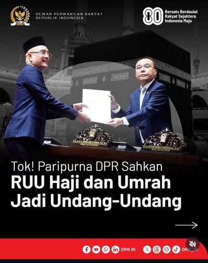 Berita Berita Kementerian Haji dan Umrah Resmi Dibentuk: Ruang Lingkup Tugas dan Otoritas Baru By webadmin • August 27, 2025 • 31 Views • Jakarta, 27 Agustus 2025- DPR RI telah meratifikasi revisi Undang-Undang Nomor 8 Tahun 2019 mengenai...